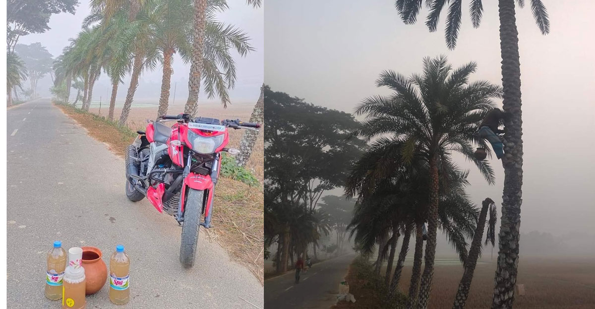 গত শনিবার ভোরে ওই এলাকায় গিয়ে দেখা যায়, ভোর হওয়ার আগেই রস পিপাসুরা এসেছেন খেজুরের টাটকা মিষ্টি রস পান করতে।