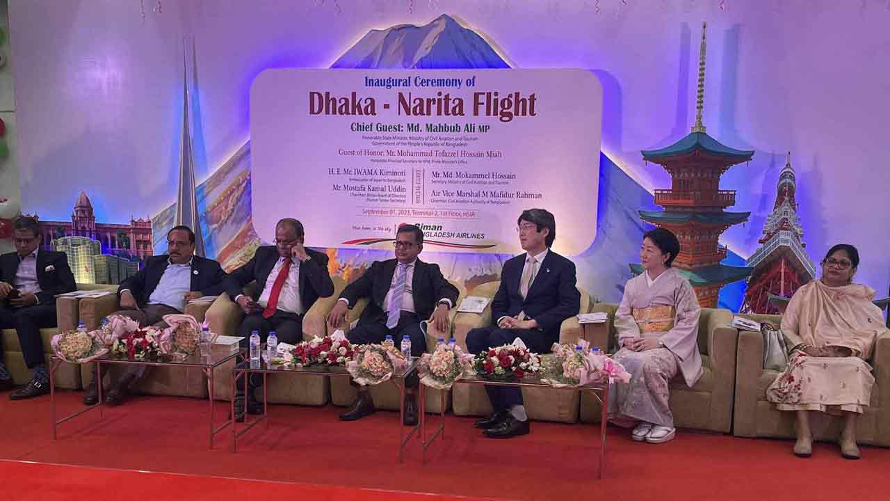 উদ্বোধনী অনুষ্ঠানে প্রধানমন্ত্রীর কার্যালয়ের মুখ্য সচিব তোফাজ্জল হোসেন মিয়া বলেন, বিমানের সরাসরি ফ্লাইট জাপান যাওয়ার ফলে অন্য উচ্চতায় পৌঁছাবে দুই দেশের সম্পর্ক। শুধু ব্যবসা-বাণিজ্য নয়, ঢাকা-নারিতা ফ্লাইট সাংস্কৃতিক অভিজ্ঞতা বিনিময়েও ভূমিকা রাখবে। যাত্রীদের সন্তুষ্টি অর্জনে সেবার মান উন্নয়নের তাগিদ দেন তিনি।