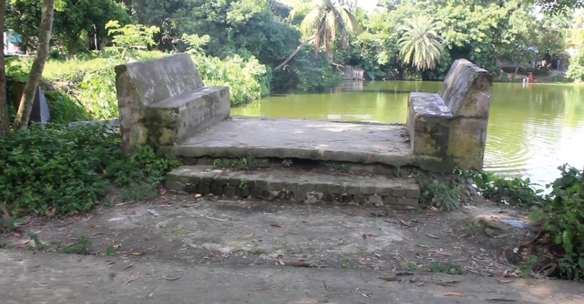গাছের গোড়াটি পাকা করে রাখা হয়েছে। আম গাছের সামনে রয়েছে একটি শান বাঁধানো ঘাট। এই আমগাছের পাশ্বর্বতী পুকুরেই নজরুল ঘণ্টার পর ঘণ্টা সাঁতার কাটতেন। একবার পুকুরে নামলে উঠবার নামও করতেন না। নজরুল সাবানের পর সাবান মেখে পুকুরের পানি সাদা করে ছোট মনিদের নিয়ে লাই খেলতেন, ডুব দিয়ে তাদেরকে কলের গান শোনাতেন। পুকুরের পশ্চিমপাড়ে একটি আম গাছ আছে। এ আম গাছের তলায় এসে কবির মা (আলী আকবর খানের নিঃসন্তান বোন ইফতেখারুন্নেছাকে মা ডাকতেন) খাবার নিয়ে এসে ডাকতেন ‘আয় নুরু, খেতে আয়!’ তখন কবি ভদ্র ছেলের মত গোসল সেরে বাড়িতে এসে ভাত খেতেন। কবি শখ করে জাল কিংবা পলো দিয়ে পুকুরে মাছ ধরতেন।
