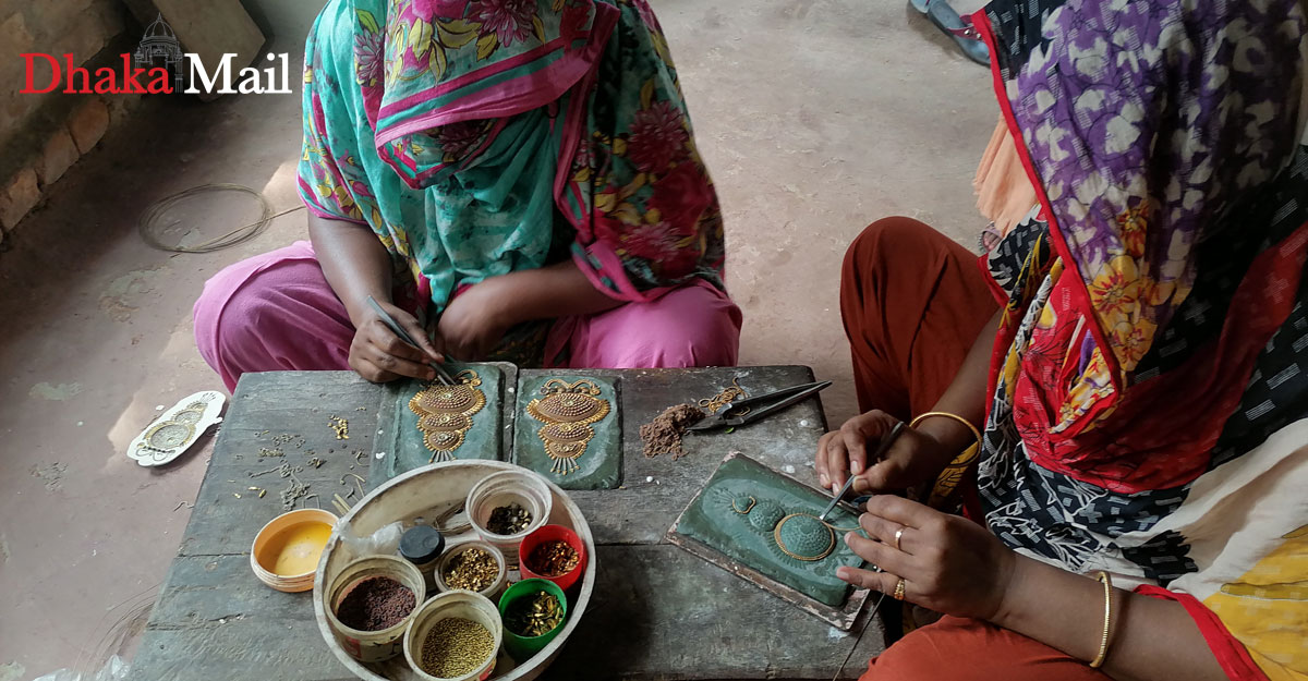 ধরমপুর গ্রামে প্রবেশ করতেই দেখা যায় নারীরা বাড়ির আঙ্গিনায় বসে টুলের উপরে গহনা তৈরির কাজ করছে। এতো নিখুঁতভাবে গহনা তৈরি করছেন, দেখতে দেখতে যেন চোখের পলক আটকে যায়।
