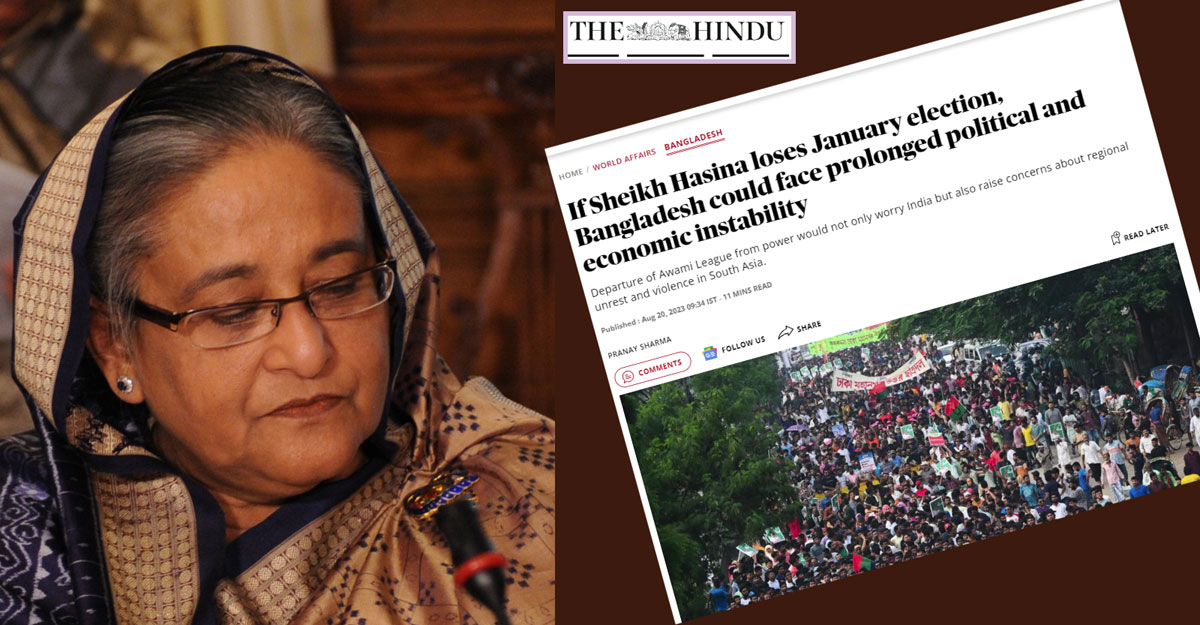 বাংলাদেশের প্রধানমন্ত্রী শেখ হাসিনার পক্ষ নিয়ে আমেরিকাকে বার্তা দিয়েছে ভারত – ভারতের সংবাদপত্রে এ খবর প্রকাশিত হবার পর বাংলাদেশের রাজনীতিতে নতুন আলোচনা শুরু হয়েছে। বিষয়টি বিএনপি ও আওয়ামী লীগের মধ্যে ভিন্ন ভিন্ন প্রতিক্রিয়া সৃষ্টি করেছে। ঠিক এরই মধ্যে নতুন করে ভারতীয় সংবাদপত্র ‘দ্য হিন্দু’-তে প্রকাশিত প্রতিবেদনে সাংবাদিক প্রণয় শর্মা জানিয়েছে যে নির্বাচনে শেখ হাসিনা হারলে বেকায়দায় পড়তে পারে ভারত। দেশটি বিভিন্ন ইস্যুতে সমস্যায় পড়বে। একইসঙ্গে আঞ্চলিক সহিংসতাও বৃদ্ধি পেতে পারে।