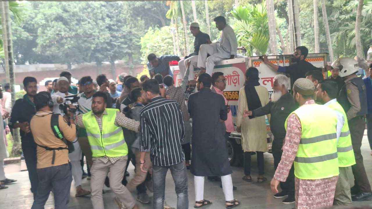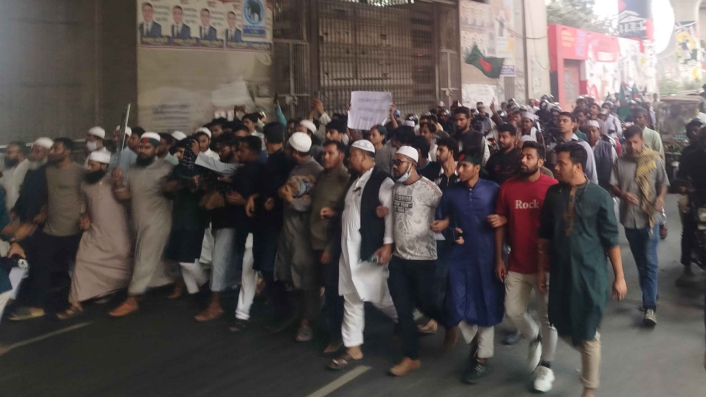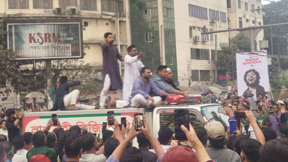 ঢাকা বিশ্ববিদ্যালয়ে বিক্ষোভ-সমাবেশে শিক্ষার্থীরা বলেন, ‘শহীদ ওসমান হাদির রক্তের শপথ, আজ থেকে আমরা প্রত্যেকে ওসমান হাদি। আওয়ামী ফ্যাসিবাদ ও ভারতীয় আধিপত্যবাদের বিরুদ্ধে রাজপথে আমাদের কণ্ঠস্বর সমুন্নত থাকবে।’