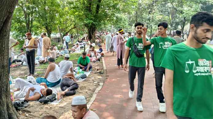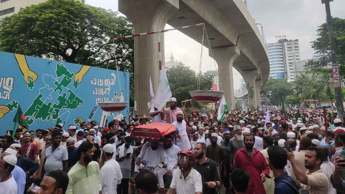 ফয়জুল হক বলেন, ‘২০১৩ সালে মতিউর রহমান নিজামী, দেলোয়ার হোসাইন সাঈদি, কাদের মোল্লা, আলী আহসান মুজাহিদসহ যাদেরকে হত্যা করা হয়েছে, তাদের রক্তের নাজরানা দেওয়ার জন্য আজকে ঢাকার অলিতে-গলিতে মানুষ উপস্থিত হয়েছে।’