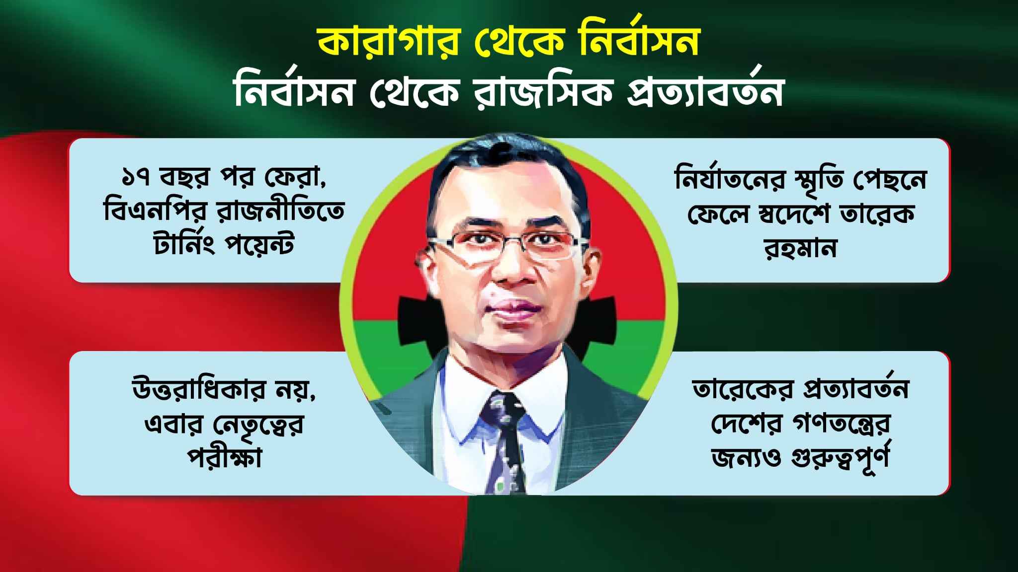 প্রায় দেড় যুগ পর বৃহস্পতিবার (২৫ ডিসেম্বর) দুপুরে লন্ডন থেকে দেশে ফিরছেন তারেক রহমান। তার স্বদেশ প্রত্যাবর্তনকে স্মরণীয় করে তুলতে এবং রাজকীয় সংবর্ধনা দিতে এই আয়োজন করা হয়েছে।