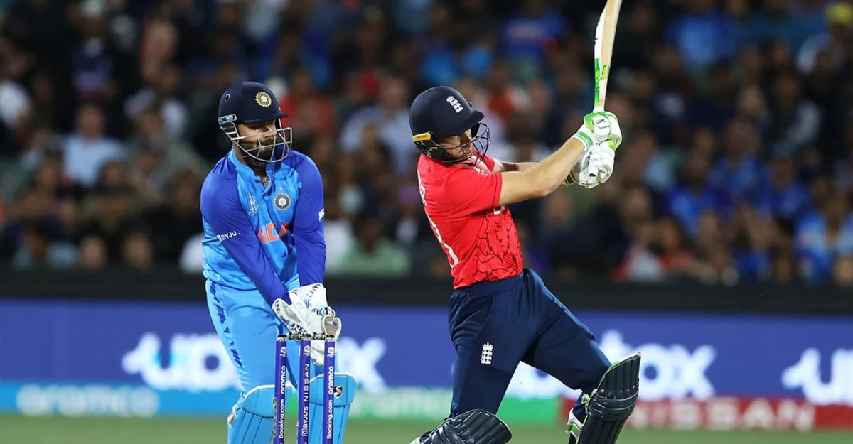 হাইভোল্টেজ ম্যাচে ১৬৯ রানের লক্ষ্যে ব্যাট করতে নেমে উড়ন্ত সূচনা পায় জস বাটলারের দল। ইনিংসের প্রথম ওভারেই তিনটি বাউন্ডারি হাঁকান ইংলিশ অধিনায়ক। আগ্রাসী মনোভাবে ব্যাট করতে থাকে দুই ওপেনার। ভারতের পেসারে থেকে স্পিনার কেউই সুবিধা করতে পারেনি। দুই ডানহাতি ব্যাটারের তোপে ইনিংসের ৪.৫ ওভারেই দলীয় অর্ধশতক পূরণ করে ফেলে ইংল্যান্ড। পাওয়ার প্লে শেষে বিনা উইকেটে ৬৩ রান সংগ্রহ করেছে ইংলিশরা।
