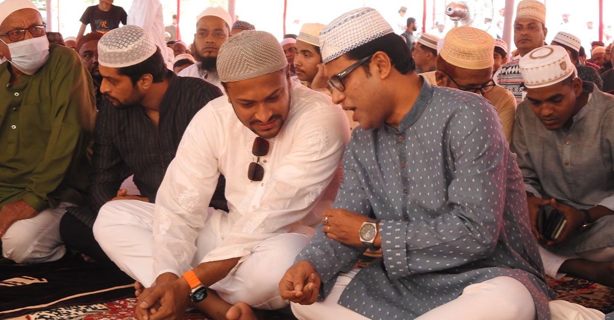 মাগুরার নোমানী ময়দান কেন্দ্রীয় ঈদগাহে ঈদুল ফিতরের নামাজ আদায় করেছেন বাংলাদেশ জাতীয় ক্রিকেট দলের টেস্ট ও টি-টোয়েন্টি অধিনায়ক সাকিব আল হাসান। নামাজ শেষে তিনি দেশবাসীকে ঈদের শুভেচ্ছা জানিয়েছেন।