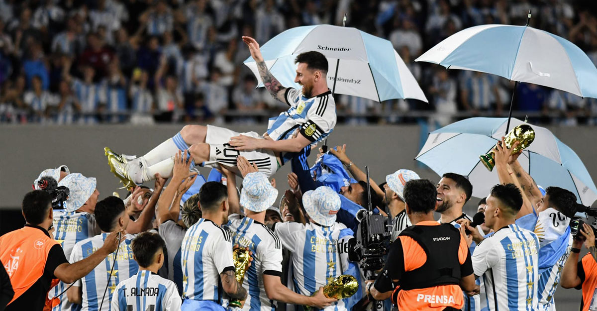 দীর্ঘ অপেক্ষার প্রহর শেষে আর্জেন্টিনার বুয়েন্স এইরেস আবারও মাতল বিশ্বকাপ জয়ের আনন্দে। তিন তারকা জার্সি গায়ে জড়িয়ে মনুমেন্টাল স্টেডিয়ামে নিজ দেশের মানুষের সামনে বিশ্বকাপ ট্রফি নিয়ে আনন্দে মাতে আলবিসেলেস্তেরা। পানামার বিপক্ষে আন্তর্জাতিক প্রীতি ম্যাচে ২-০ গোলের জয় সেই উদযাপনকে অন্যরকম মাত্রা যোগ করেছে। সেই সঙ্গে লিওনেল মেসির ইতিহাস গড়া মাইলফলকও অর্জন হয়েছে। নিজের ফুটবল ক্যারিয়ারের ৮০০তম গোলের দেখা পেয়েছেন লা পুলগা। সব মিলিয়ে স্মরণীয় একদিন কেটেছে আর্জেন্টাইনদের।