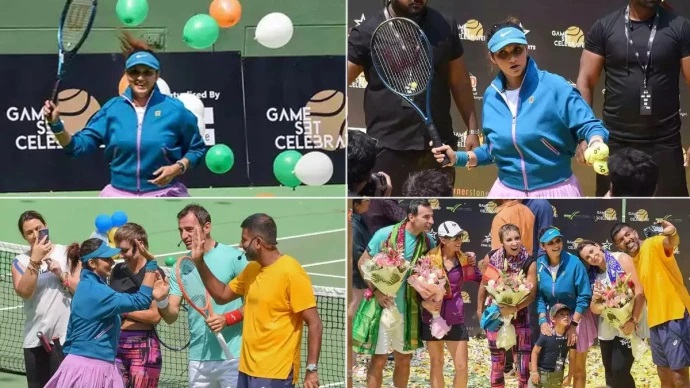 হায়দরাবাদে বিদায়ী প্রদর্শনী ম্যাচে সানিয়ার সঙ্গে লাল বাহাদুর টেনিস স্টেডিয়ামে দেখা গিয়েছে রোহন বোপান্না, যুবরাজ সিং, সানিয়ার প্রিয় বন্ধু বেথানি মাটেক স্যান্ডকে। এছাড়া সানিয়ার শেষ ম্যাচ দেখতে গ্যালারিতে হাজির ছিলেন একের পর এক নক্ষত্র-কেন্দ্রীয় ক্রীড়ামন্ত্রী কিরেন রিজিজু, ভারতের ক্রিকেটের সাবেক জাতীয় দলের অধিনায়ক মোহাম্মদ আজহারউদ্দীন ও চিত্রতারকা দুলকির-সালমানরা।
