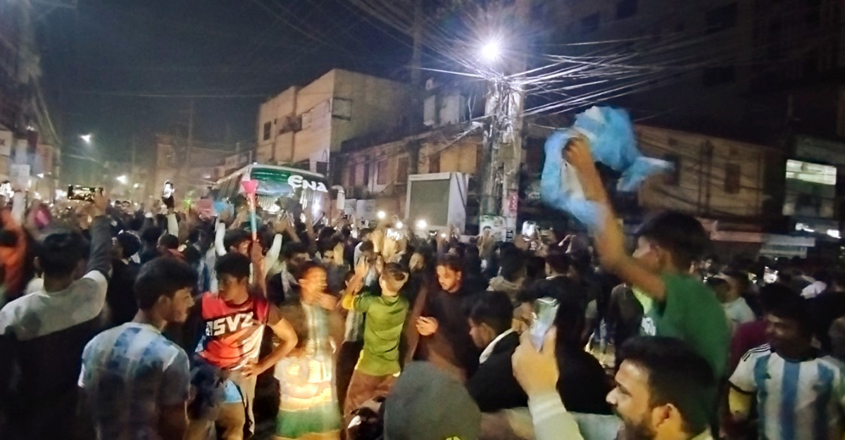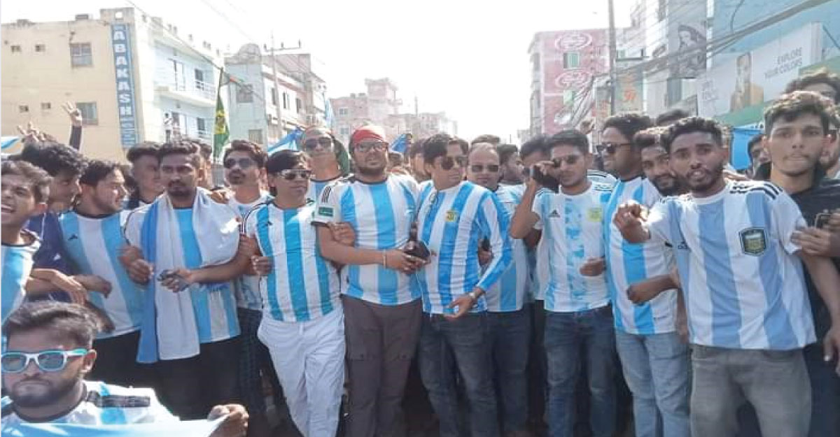 রোববার (১৮ ডিসেম্বর) ফাইলান খেলা উপলক্ষে উপজেলার বকসীপাড় গ্রামের আর্জেন্টিনা সমর্থক গোষ্ঠী মোহাম্মদ রায়হান মিয়া নেতৃত্বে গ্রামের যুবক-কিশোর ও শিশুরা পতাকা নিয়ে মিছিল করেছে। এসময় হাজার উৎসুক মানুষ ওই মিছিলটি উপভোগ করে।